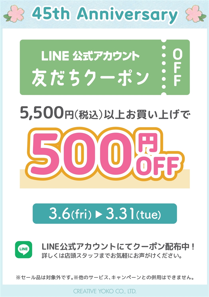 🌸45周年 Happy Anniversary🌸500円OFFクーポン配信中