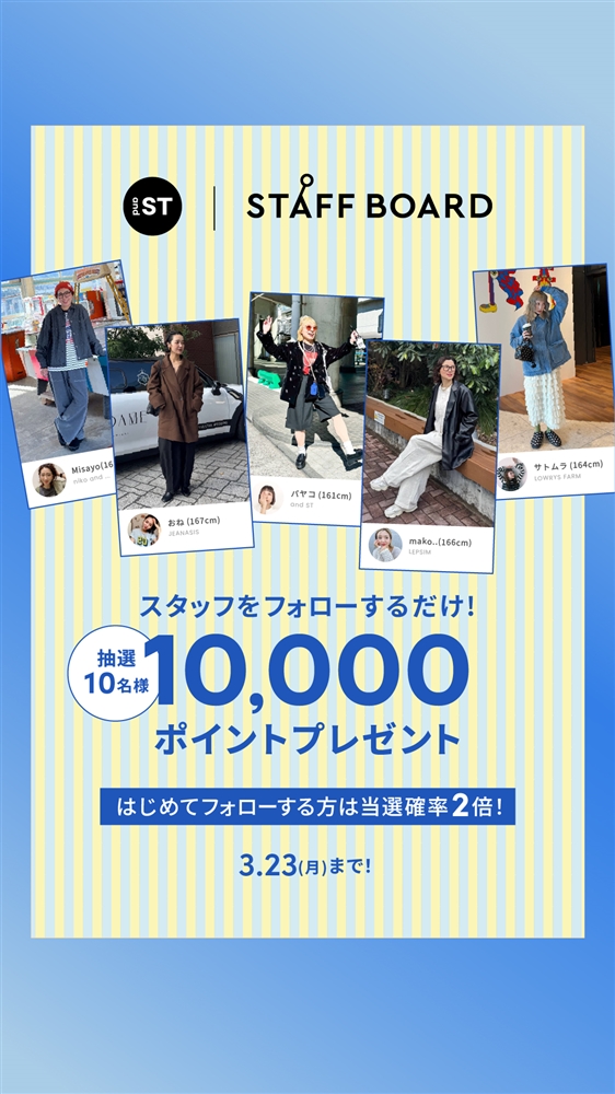 スタッフをフォローするだけ!1万ポイントプレゼント🎁