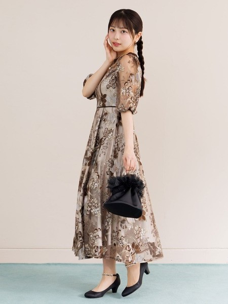 フラワー刺繍ワンピースドレス
