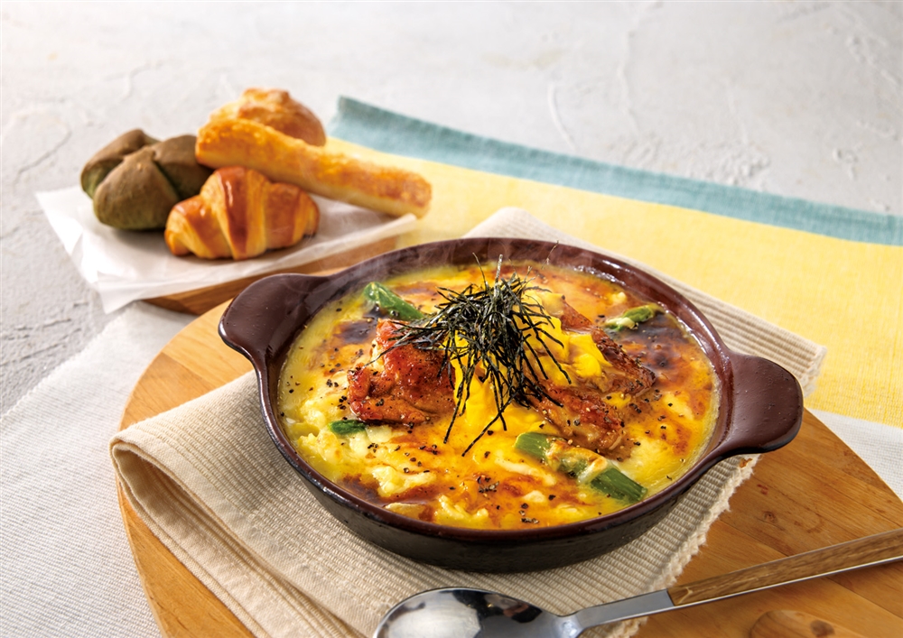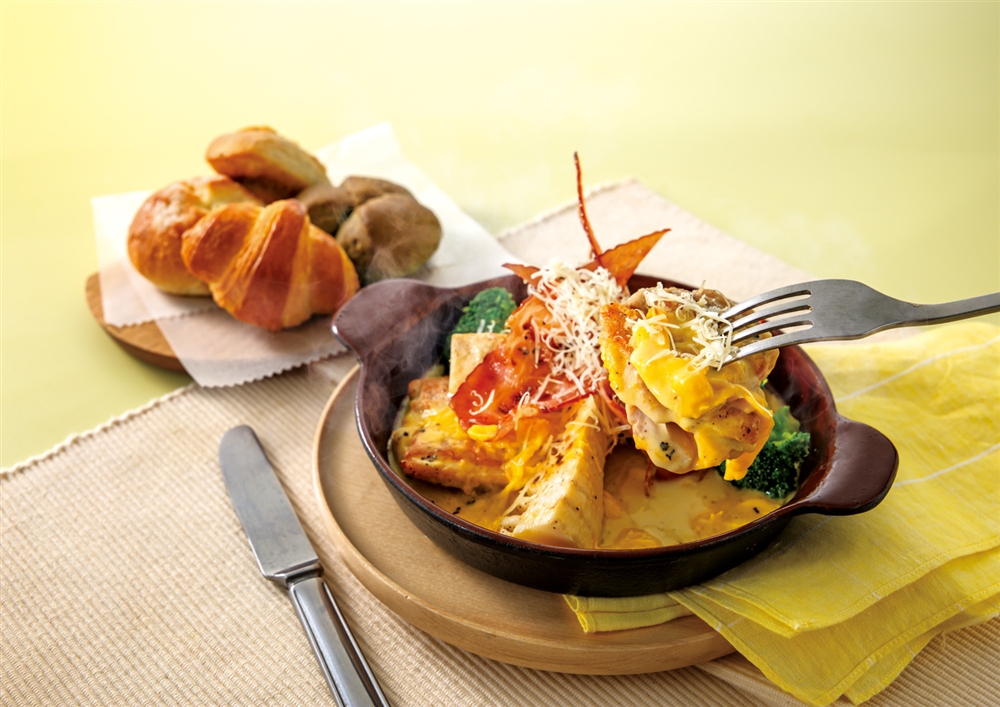 照り焼きチキンとアスパラ とろっと卵のカルボナーラドリア(パン食べ放題付き)