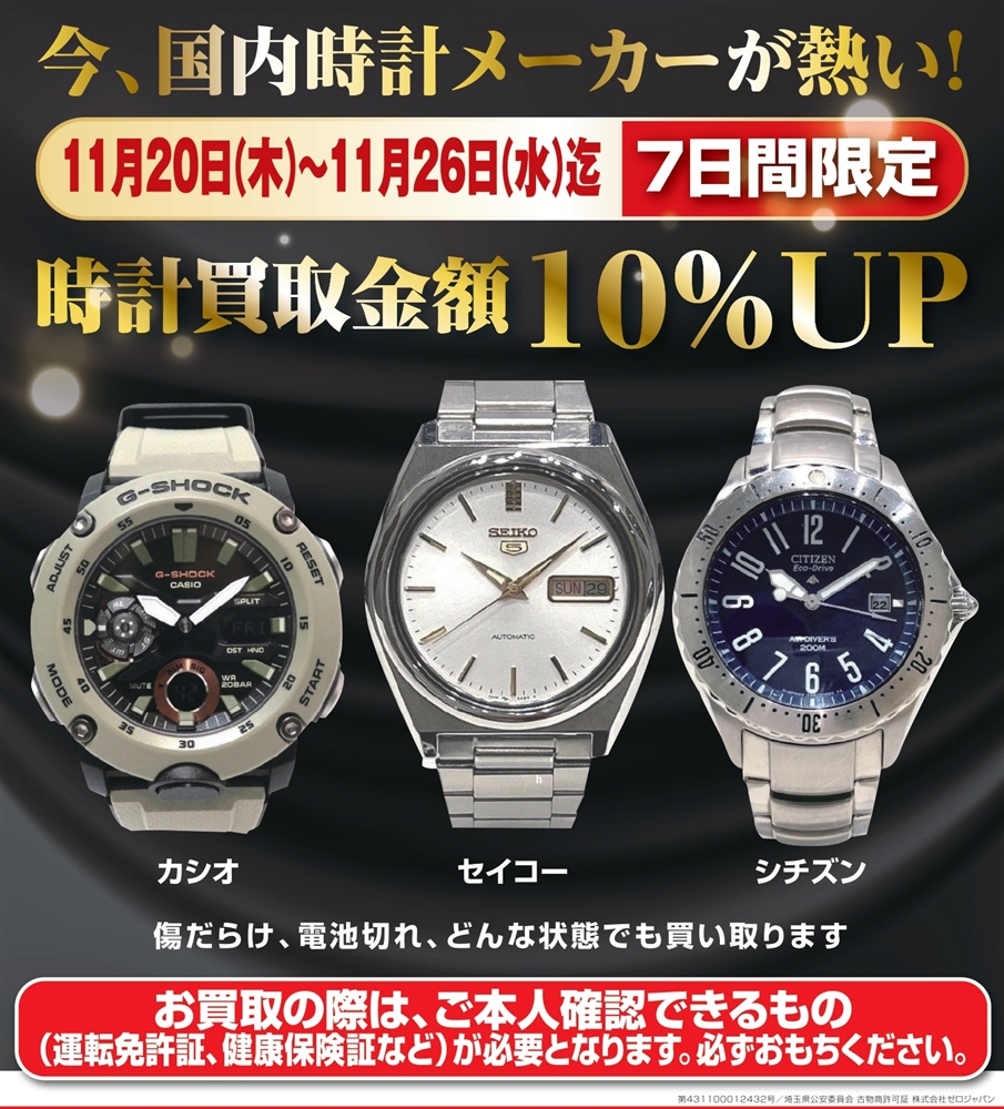 時計買取キャンペーン 11月26日迄 7日間限定!!