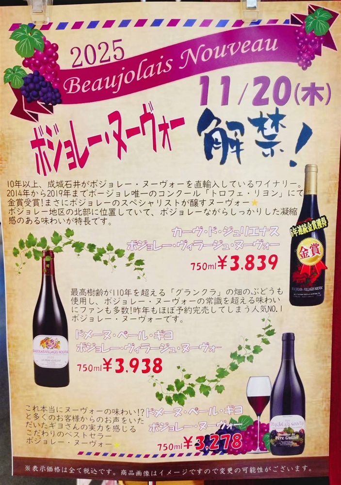 ボジョレー・ヌーヴォー2025解禁!!