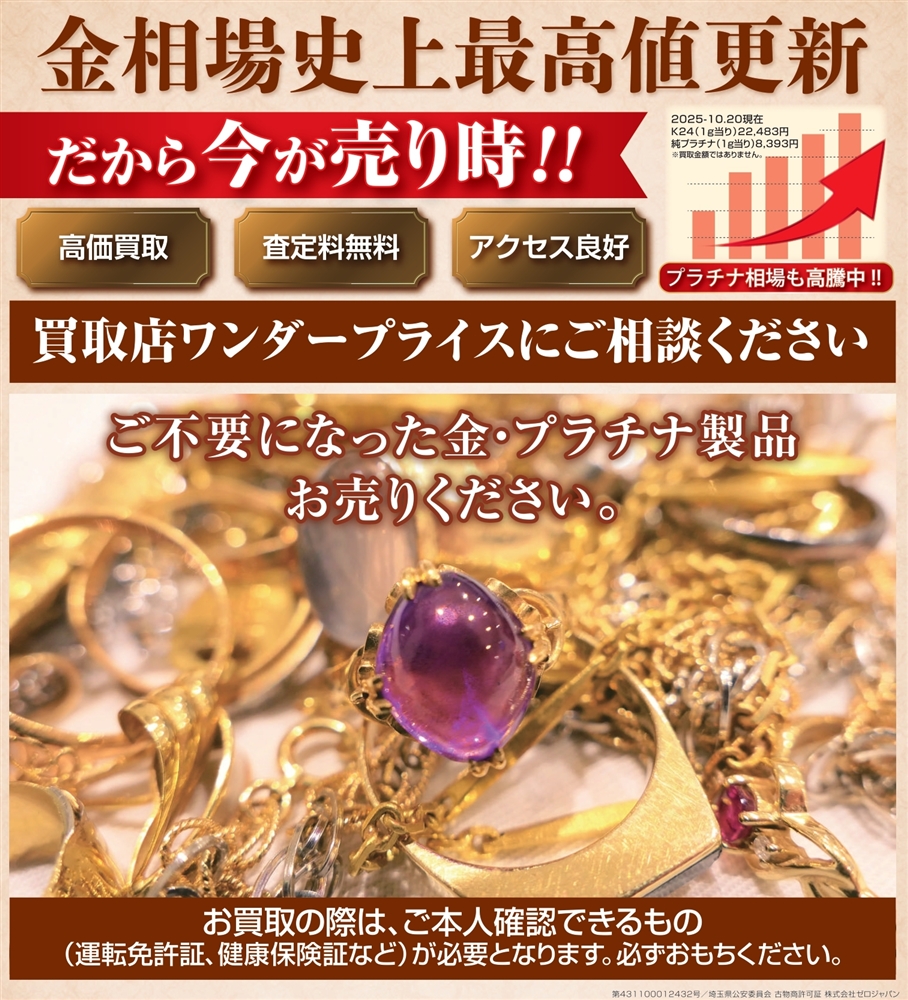 金・プラチナ・ジュエリーお売りください。絶賛相場高騰中!!