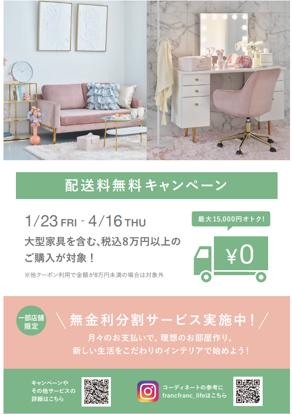 1/23(金)より配送料無料キャンペーン開催!