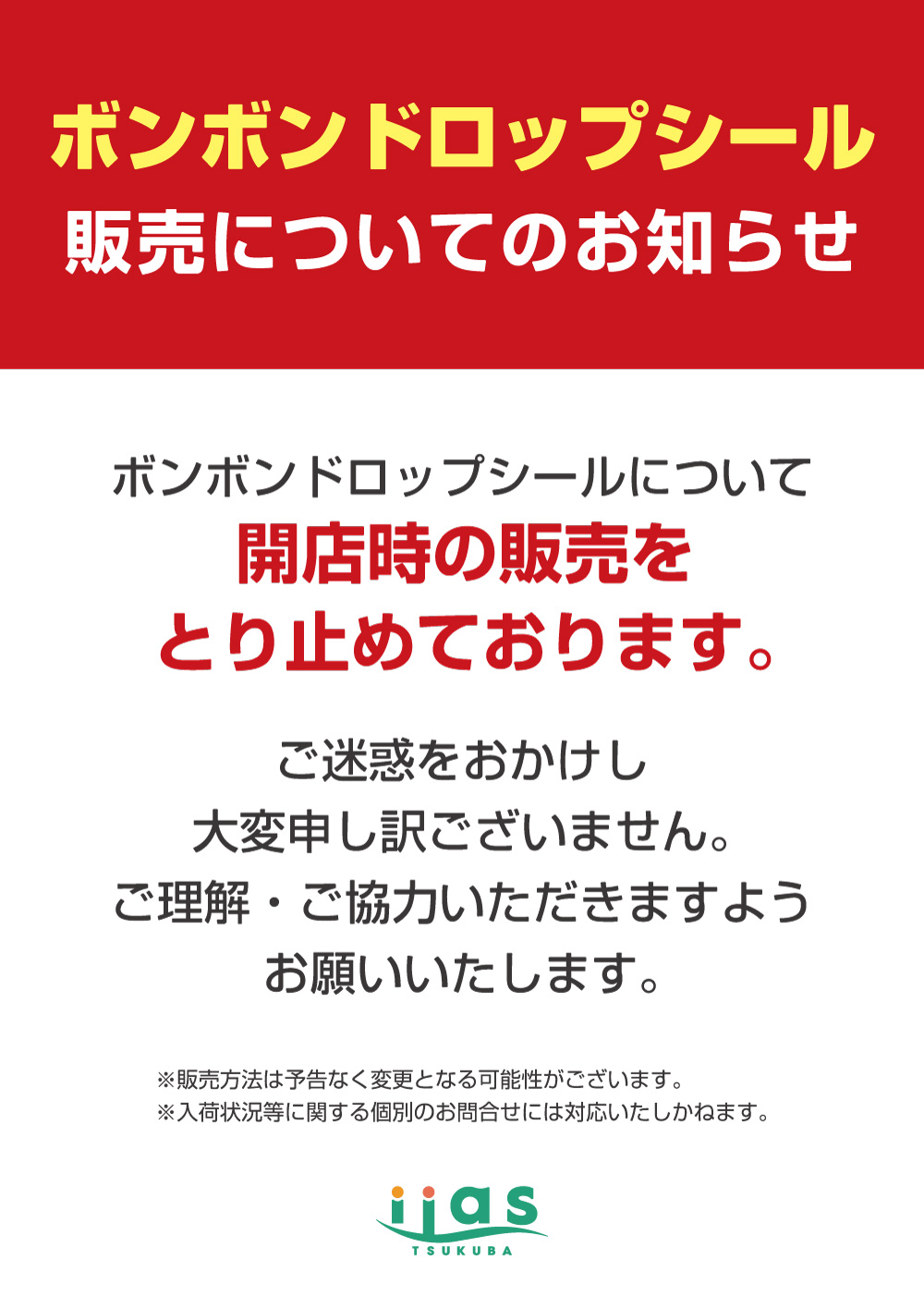 ボンボンドロップシール販売についてのお知らせ