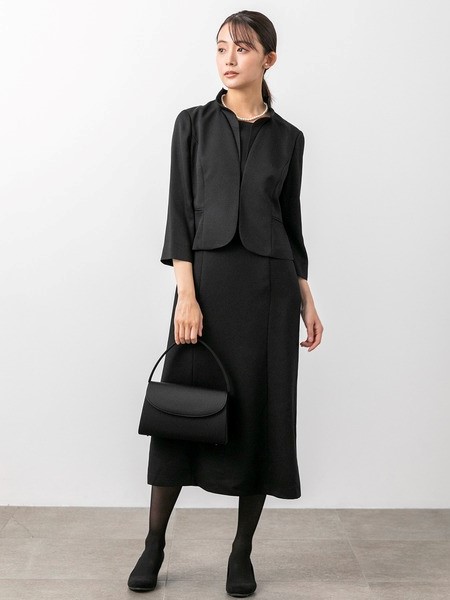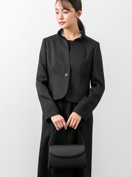 スタンドカラージャケット&セミフレアワンピース