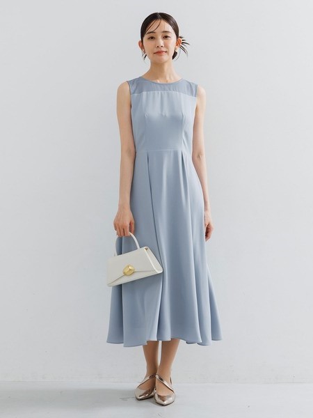 ワンピース単体でも着用できるようデコルテ切り替えがアクセント。