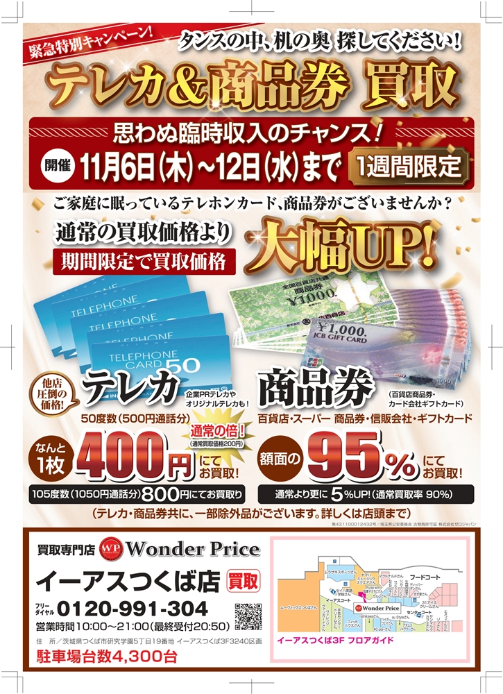 テレカ&商品券特別買取キャンペーン【11月6日~11月12日】