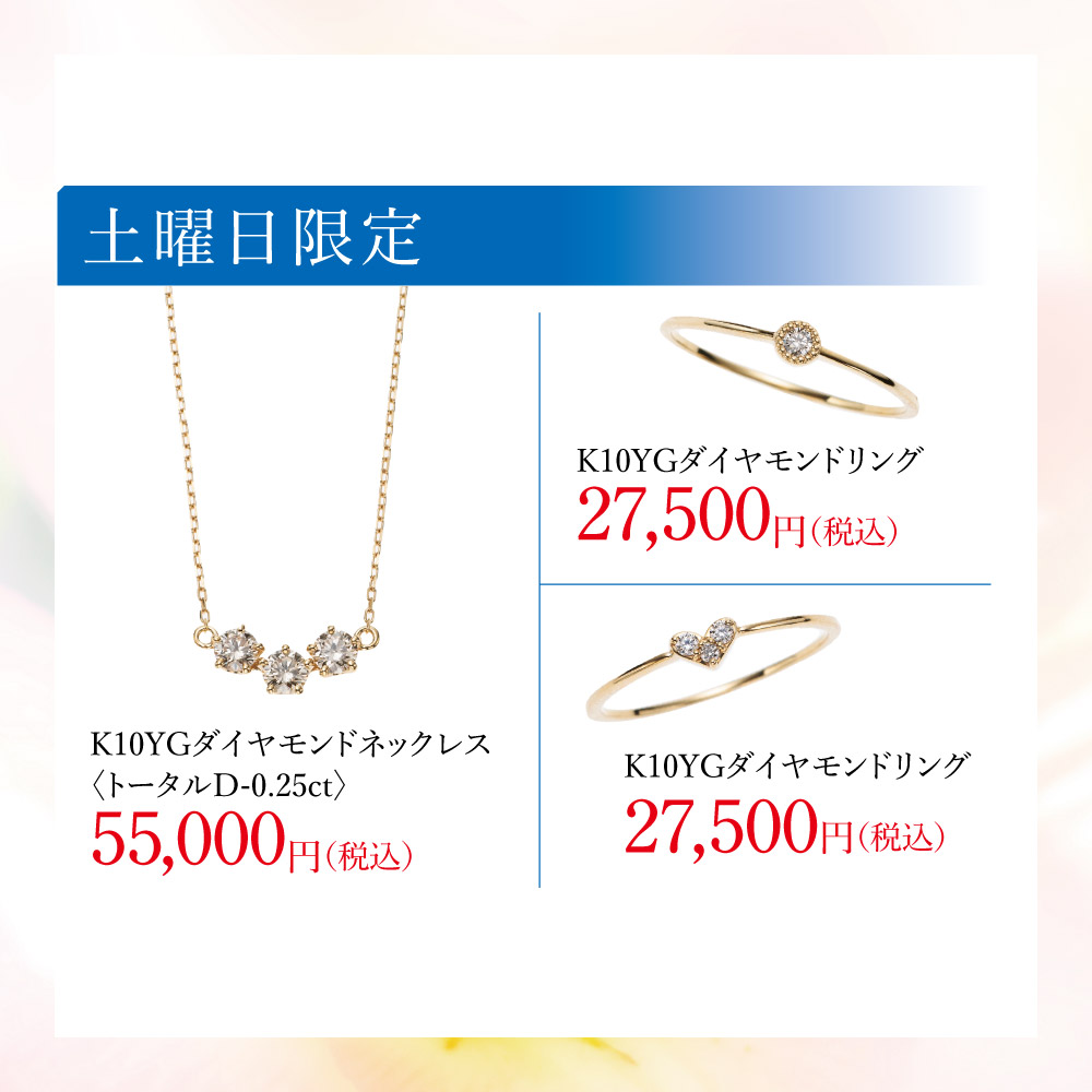 大人気のパール、ゴールド、プラチナジュエリーを特別価格でご用意いたしております。