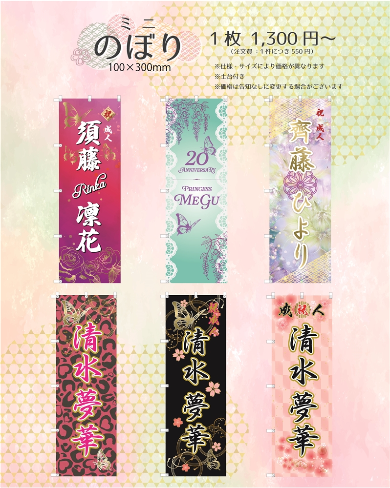 🎊👘成人やお店にも使える のぼり・ミニのぼり🎉🌮
