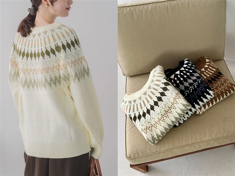 1枚で一気に秋冬ムードを高めてくれる求心柄のニット♪