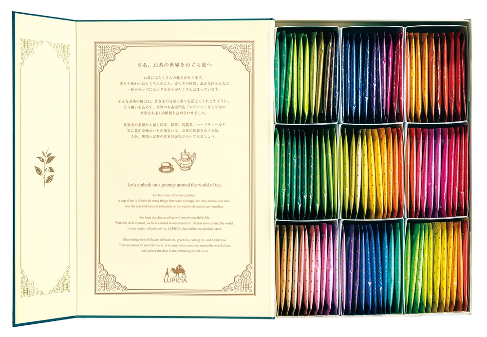 紅茶、緑茶、烏龍茶、ハーブティーまで、ルピシアならではの個性豊かな100種をティーバッグで贅沢に詰め合わせました。