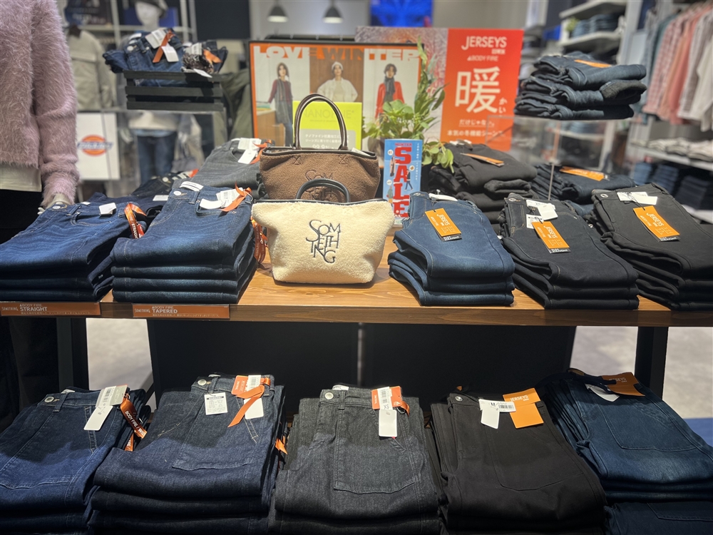 伸縮性があり暖かく穿きやすいジーンズがございます。