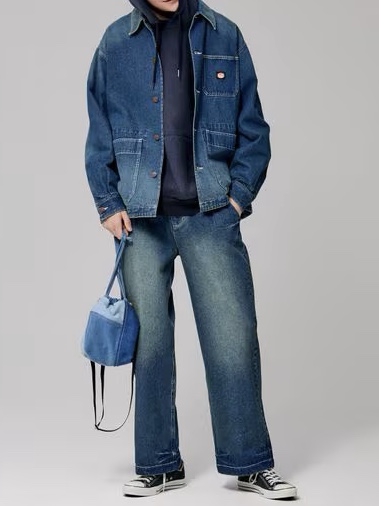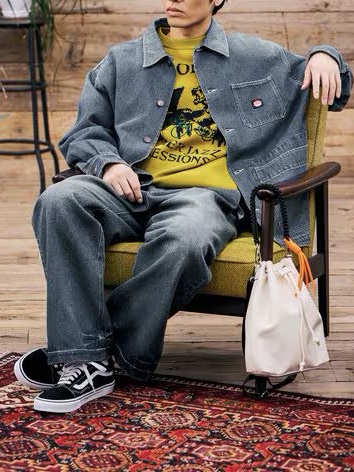 ワークカバーオールを参考に作製した裏地のつかないデニム素材の春アウターと