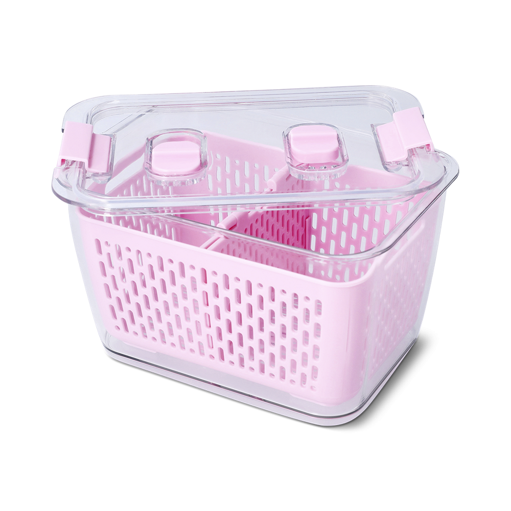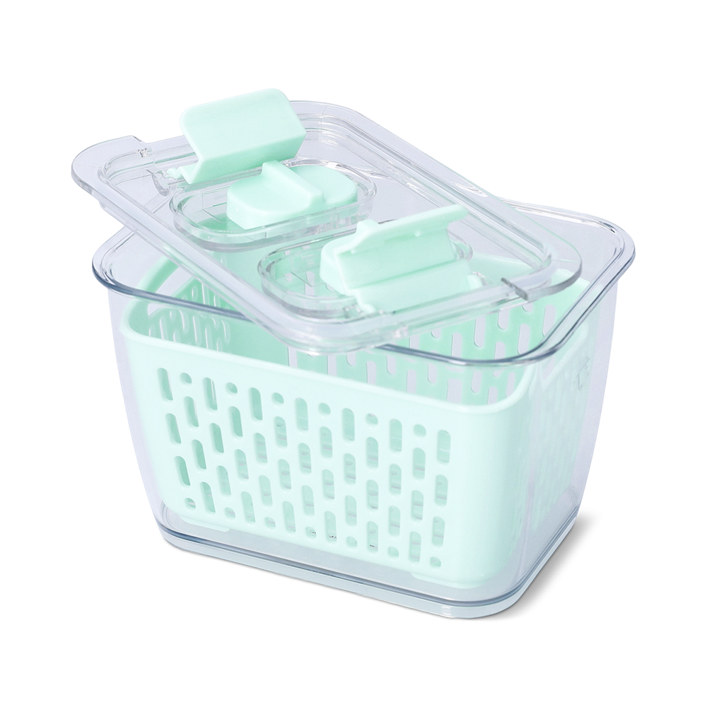 洗った野菜やフルーツをそのまま保存できて、水切り部分が余計なな水分をカットするので、鮮度も、使いやすさも抜群!