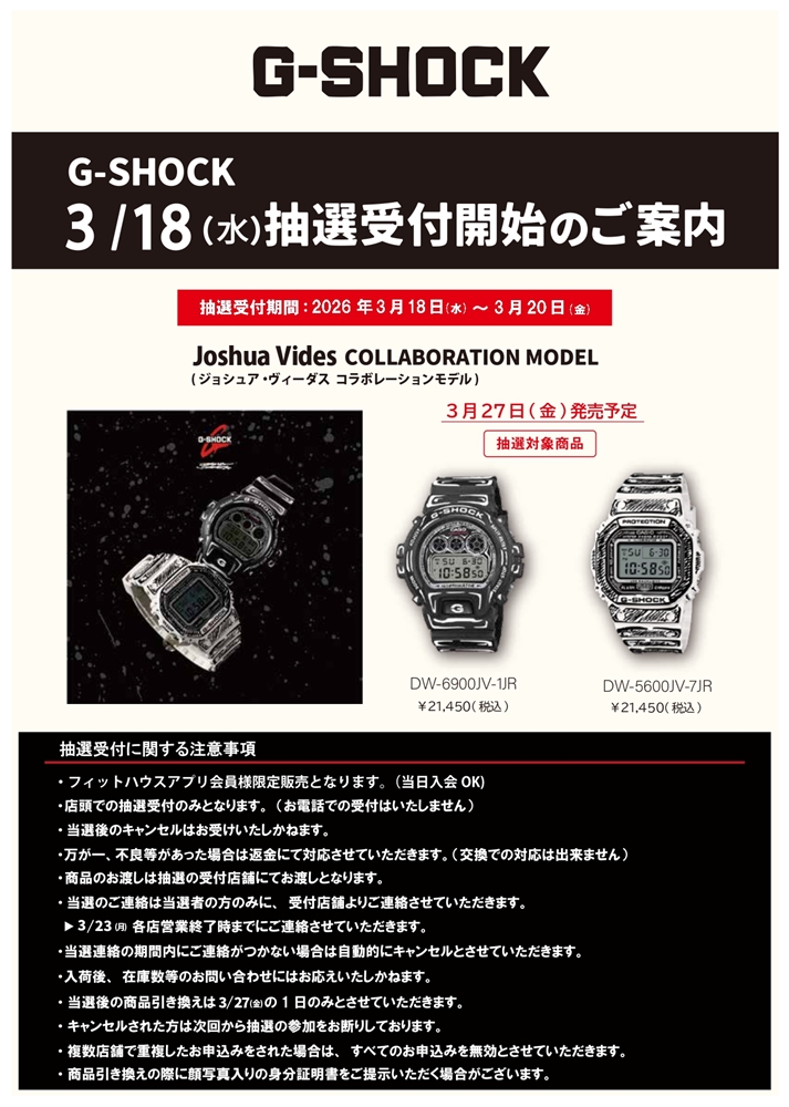 【G-SHOCK】ジョシュア・ヴィーダスコラボレーションモデル抽選受付
