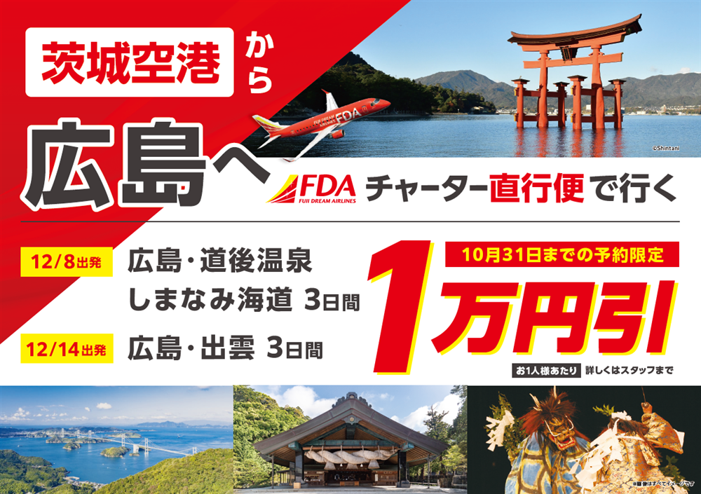 12/08,14発 茨城空港発FDAチャーターのお得なお知らせ!!!